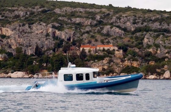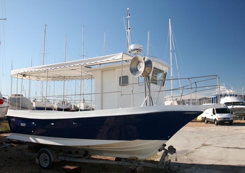 9 m fishing boat with cabin.