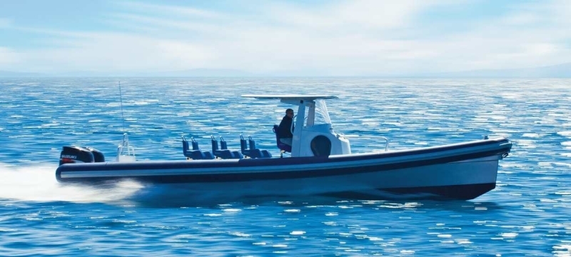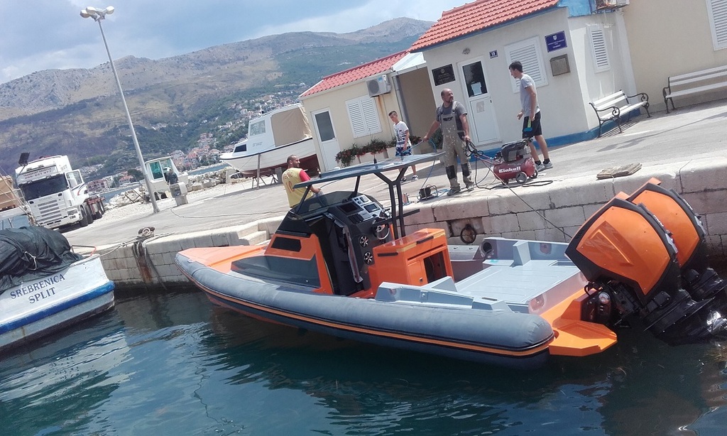 GRP e-glass,carbon,kevlar construction.Deep V vented bottom 2x outboard Envirude E-Tech 300 HP speed 60+kts.